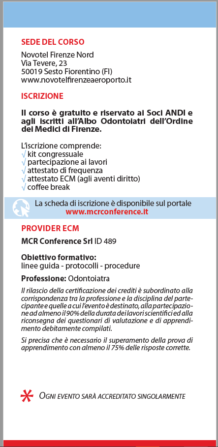 Quest'area del sito è accessibile ai singoli soci ANDI della Regione.